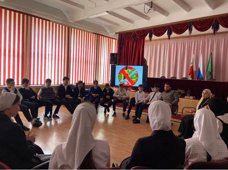 19.05.2022Во исполнение межведомственного плана мероприятий по профилактике употребления наркотических средств и психоактивных веществ среди несовершеннолетних на 2021-2023 годы в МБОУ "Гимназия №13" г.Аргуна им.С.Д.Диканиева 19.05.2022г психологами Чатаевой Р.Ю. и Зелемхановым А.Т. проведена Беседа с обучающимися 7-8 классов по профилактике наркомании, токсикомании и табакокурения .