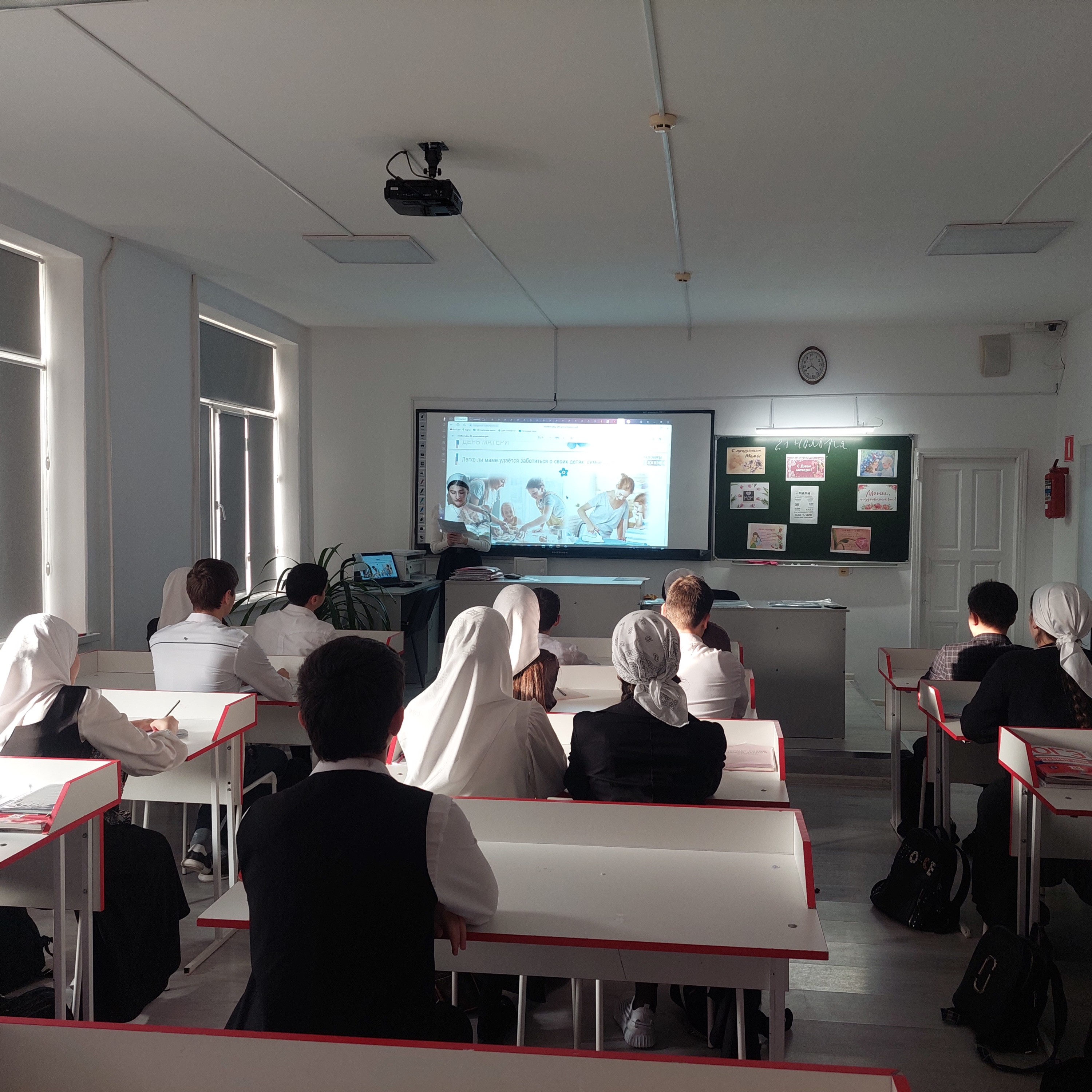21.11.2022«Разговоры о важном» прошли в МБОУ «Гимназия №13» г. Аргуна им. С. Д. Диканиева, посвященные Дню материВ рамках реализации федерального проекта «Успех каждого ребенка» национального проекта «Образование» в МБОУ «Гимназия №13» г. Аргуна им. С. Д. Диканиева учащихся из параллели 11 классов собрали на торжественной линейке для поднятия Государственного флага Российской Федерации и Чеченской Республики. Затем их попросили пройти по кабинетам, где состоялось очередное занятие из цикла "Разговоры о важном", посвященное Дню матери.Цель занятий — сформировать бережное отношение к женщине-матери, уважение к материнскому труду и к многодетным матерям России. Замечательно, что существует такой праздник. Помнить о мамах, конечно, нужно не один день в году, а ежедневно, ежечасно.